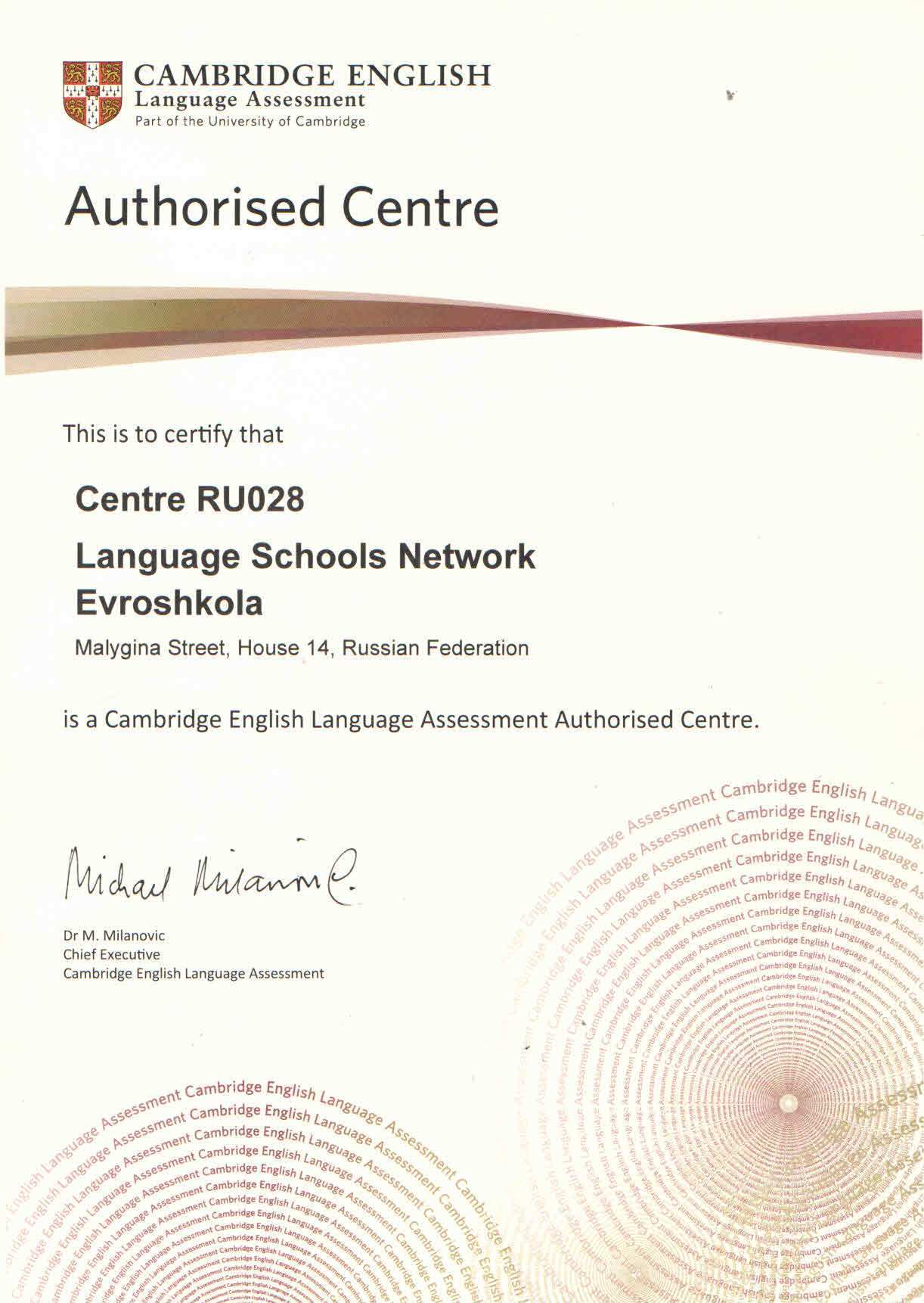 Авторизованный центр по приему экзаменов Cambridge English