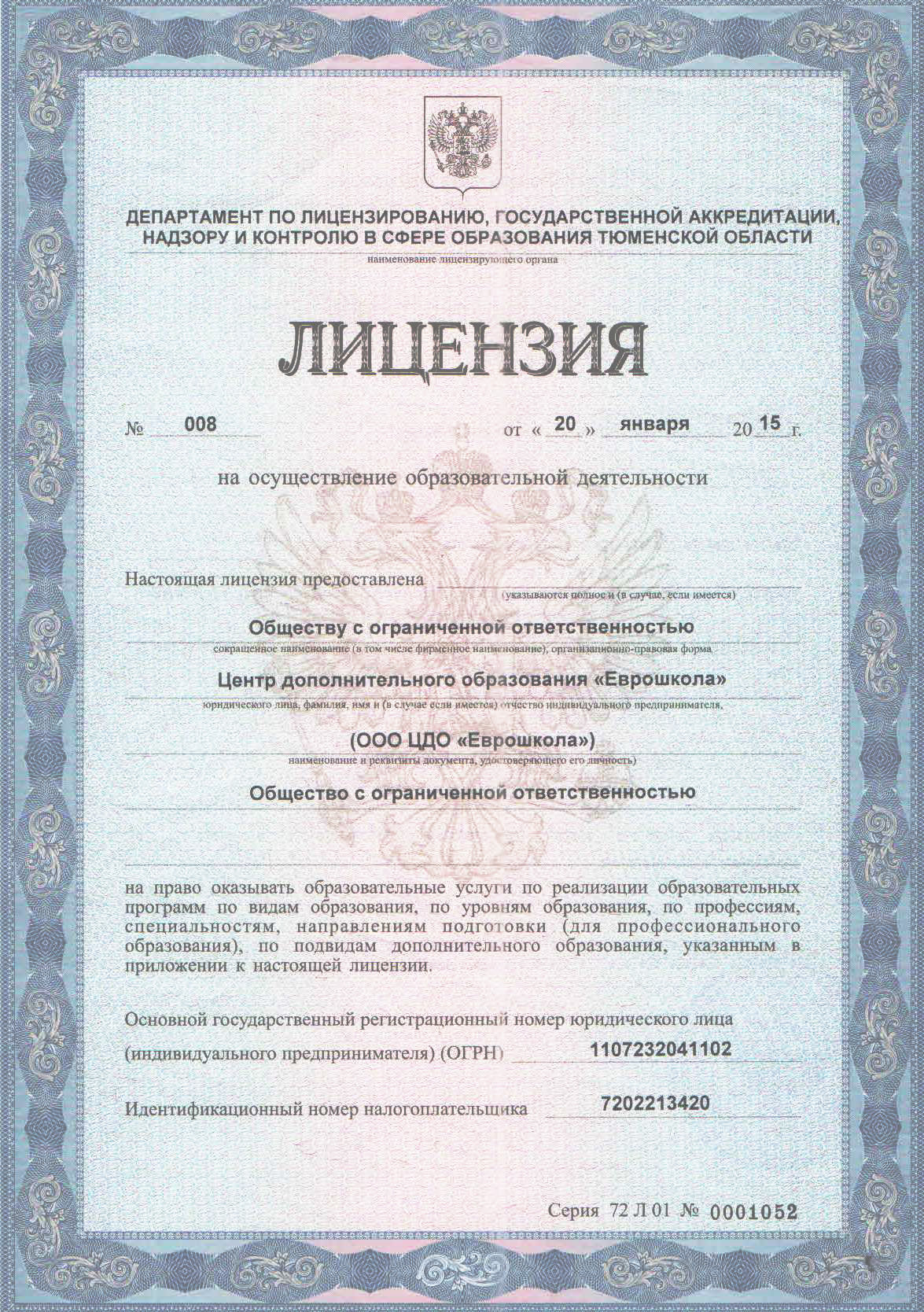 Лицензия на осуществление образовательной деятельности